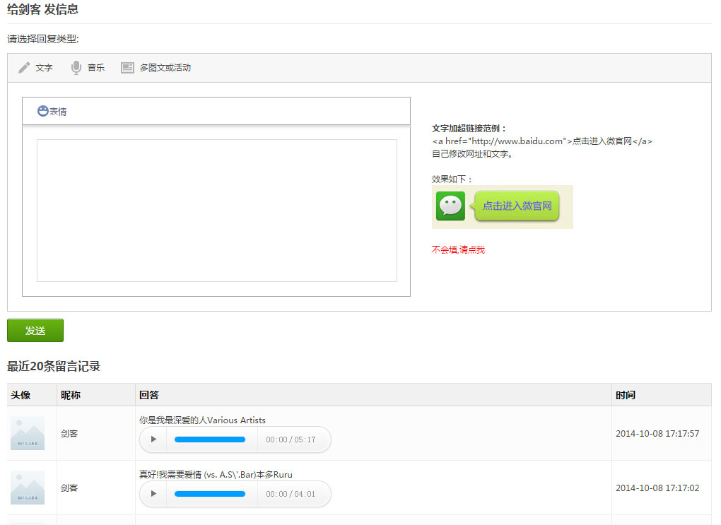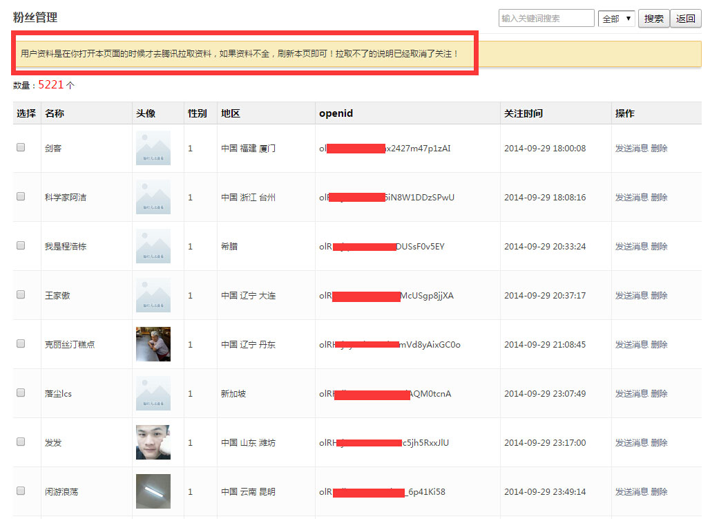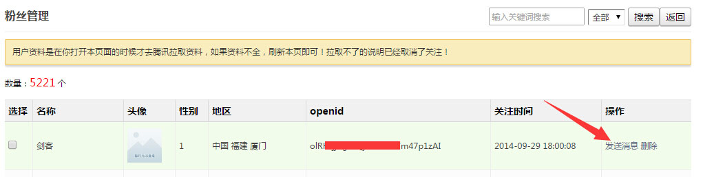 功能亮点:可设置不同的渠道,生成不同的二维码,商家可看到粉丝具体是从哪个渠道扫描进来的,并且还可以看到粉丝的具体地区,昵称等,可以直接与粉丝发送消息。