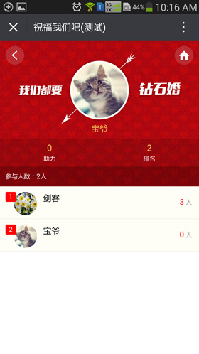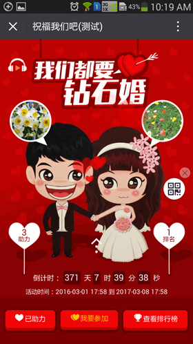 邀请自己的另一半在一起,然后分享给朋友,让朋友祝福,祝福的人越多,越快达到钻石婚。