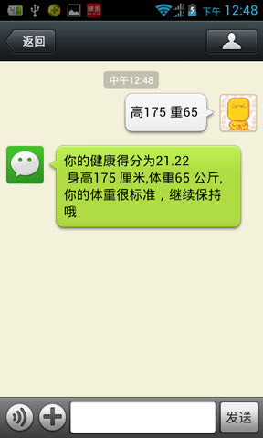 输入:身高173 体重56 或输入:高173 重56