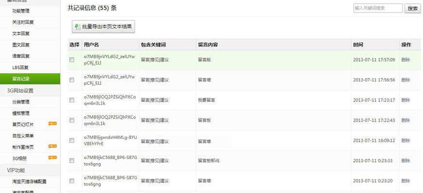 开启此功能,只需要设置好关键词,选择包含匹配,选保存留言,当粉丝发送的信息有包含你设置的关键词就可以在后台查看到。
