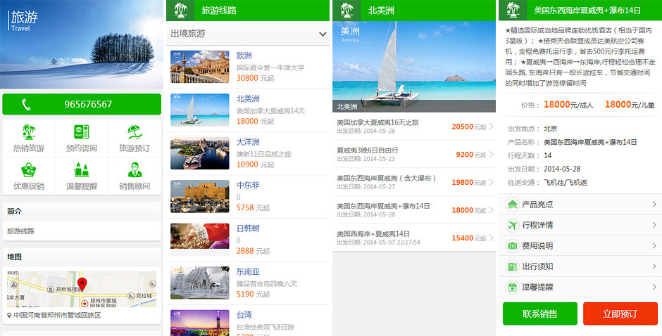 使用技巧:预约咨询和销售顾问可以直接跳转到拨号界面,旅游预订可以直接下单,商家可以后台处理。