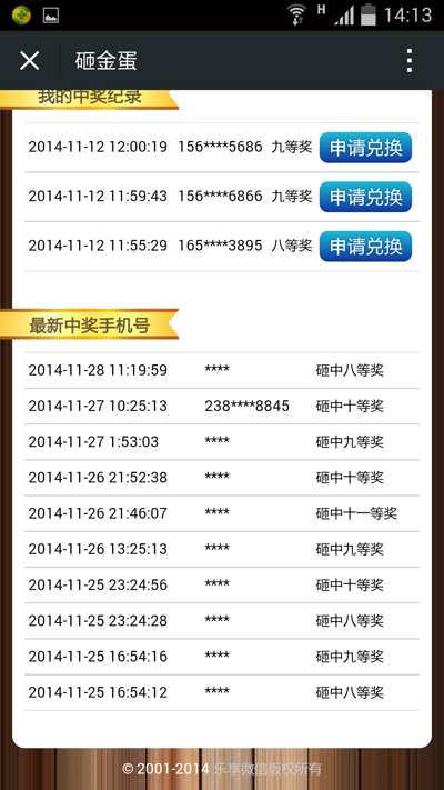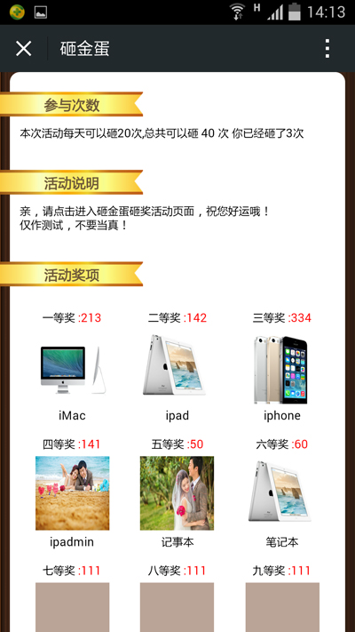 3.活动奖项可自由定义,并且支持内定中奖人。
