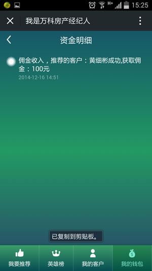 2.英雄榜可实时显示所有经纪人佣金情况并且排名,让用户形成攀比意识。